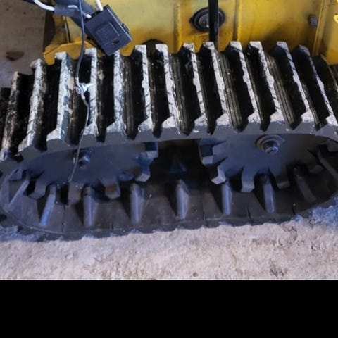 Beltesnøfreser , beltefreser , Snøfreserbelter / beltesett fra Canadiana 5hk/ 8hk med spesiallagede fester for Ariens 5 hk (504/524, og 724 snøfresere fra 80-90 tallet .