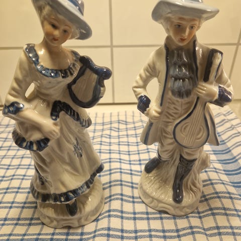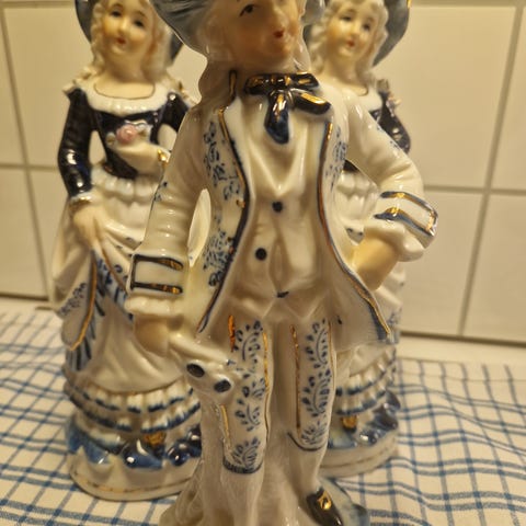 Porselensfigurer par blå og hvit