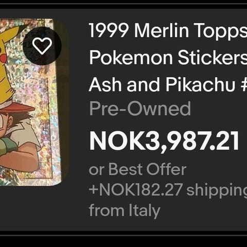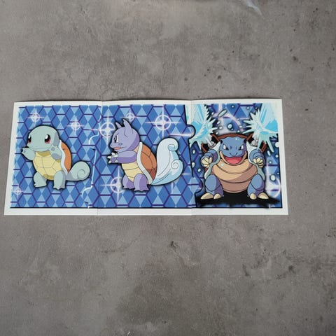 Selger noen vintage Pokémon-stickers fra 1999–2000, fra Artbox-serien til Nintendo.