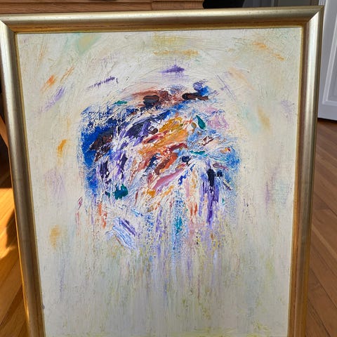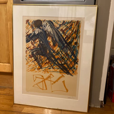 Tråden til å henge opp bildet har røket. Dette kan enkelt fikses hos et rammeverksted.