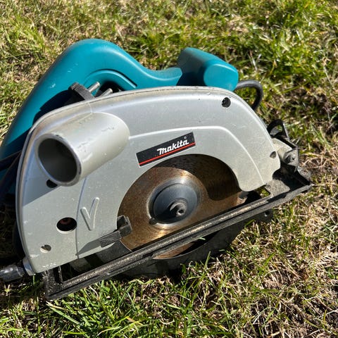 Makita 5604R sirkelsag med 165 mm sagblad. Elektrisk håndholdt sirkelsag egnet for kapping av treverk og plater. Robust konstruksjon med metallfot og beskyttelsesdeksel. Ergonomisk håndtak i blå plast. Passer til generelle snekker- og byggeoppgaver der det er behov for rette og presise kutt i trebaserte materialer.