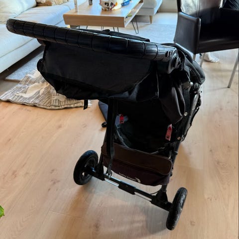 Bugaboo barnevogn i svart farge. God brukt men masse bruk igjen! Ene feste til kalesjen er knekt av, men det kan kjøpes til en billig peng på nett. Søskenbrett kan følge med om ønskelig