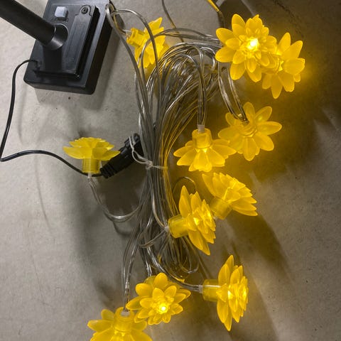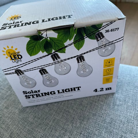 Plantagen lysslynge i varm hvit farge. Lysslyngen har små lyspunkter festet på en grønn ledning, egnet til bruk i flere årstider.