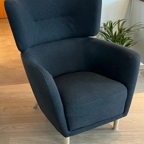 «EKERÖ lenestol har et elegant, moderne utseende med to sidestykker som møtes i ryggen – og korsryggstøtte for ekstra komfort!