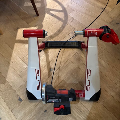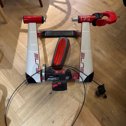 Elite muin smart b+ sykkelrulle, pent brukt, følger meg hurtigkobling og ultegra kassett 11delt.passer kun med hurtigkobliger ramme , ikke thru axle. Fungerer med zwift , nytt batteri på Bluetooth adapter
