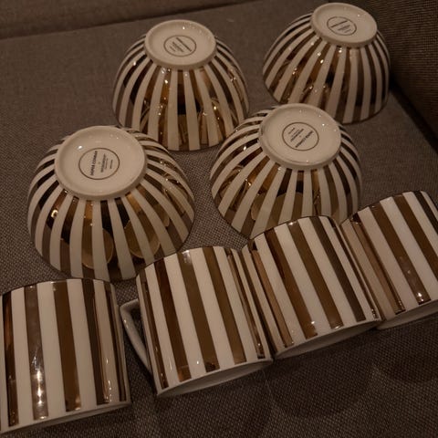 Nydelig Jasper Conran kopp m/tefat med gullstriper, kjøpt på Illum Bolighus.