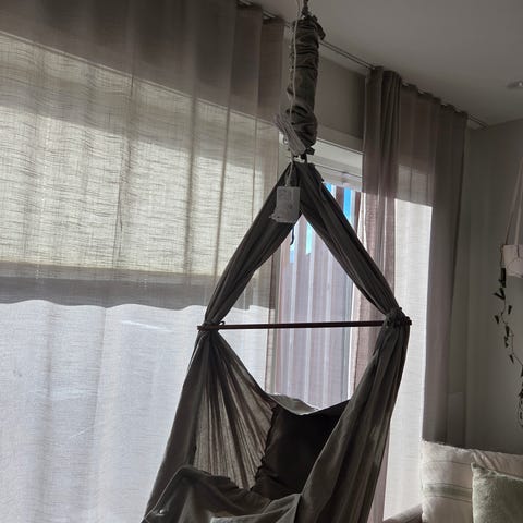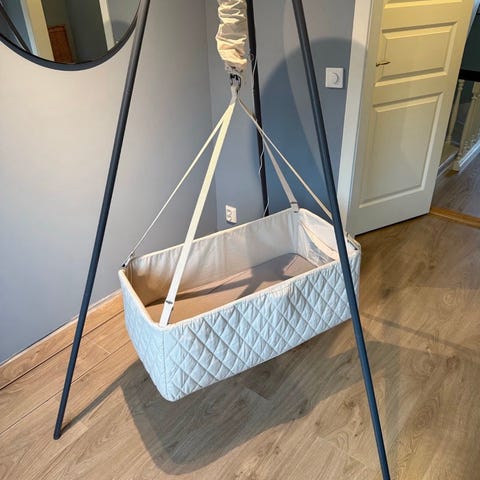 Nonomo hengevugge med stativ selges med en Moonboon hengemotor. Følger også med karmbeslag så du kan ta den med deg på tur eller på besøk til andre. Lett å frakte uten stativet