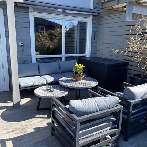 Pent brukt. Alltid stått under tak, og puter oppbevart inne om vinteren. Putene er fine og har ingen synlig slitasje, men trenger en vask.