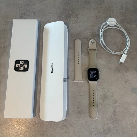 Apple Watch Series 10 smartklokke med 42 mm urkasse i rosa aluminium og lys silikon sportreim. Klokken ble kjøpt ny for 1 år siden og har blitt svært lite brukt grunnet allergi. Den er i god stand og er klargjort for ny eier og er vasket med antibac, noe overflate slitasje som så vidt vises, klarte ikke ta bilde av det.