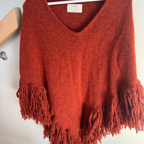 Fin Phillippa poncho fra Dehn Design i beige farge.