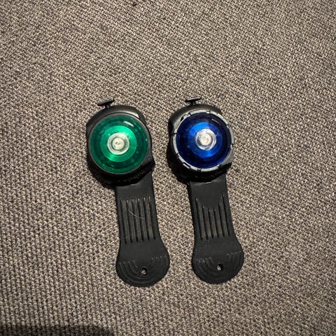 Pakken inneholder to LED-sikkerhetslys som kan festes på hundesele eller halsbånd med medfølgende silikonstropper. Lysene har flere LED-punkter for god synlighet i mørket. De lades med USB‑C (kabel ikke inkludert). Egnet for bruk på tur og andre aktiviteter i dårlig lys for å gjøre hunden mer synlig.hentes eller sendes mot at kjøper betaler porto