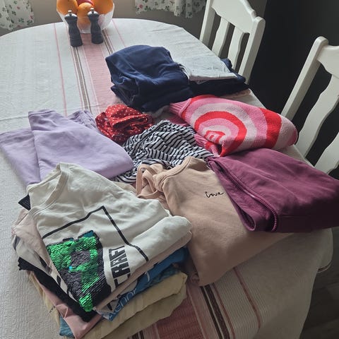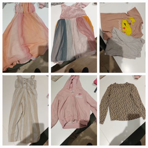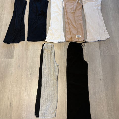 selger 2 bukser, 1 genser, 1 t-sjorte og 1 kjole.