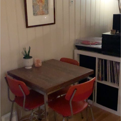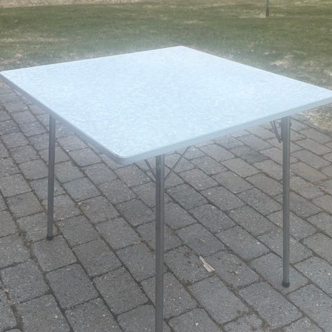 Pent brukt respatex bord fra 70 tallet med to klaffer. Ingen farge forskjell på bordet og klaffene.