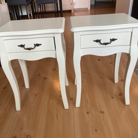 To stk fine nattbord malt i lys antikk. Pent brukt og mye bra bruk igjen. Ta gjerne kontakt ved spørsmål. Kan leveres i nærområdet mot et kostnadstillegg.