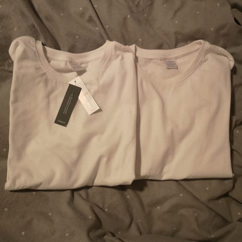 To stk hvite T-skjorter fra Cubus i str 158/164.