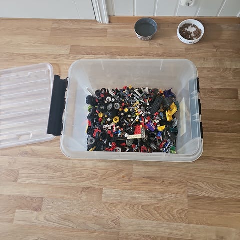 Hama Junior Midi Box: oppbevaringsboks med Hama perler i mange farger - fortsatt veldig full.