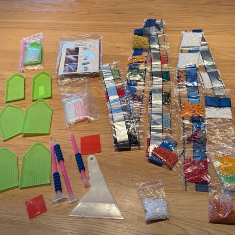 Perlesett nr 2 er litt mer hjemmesnekret, inkluderer både Hama perler og perler i annen kvalitet.