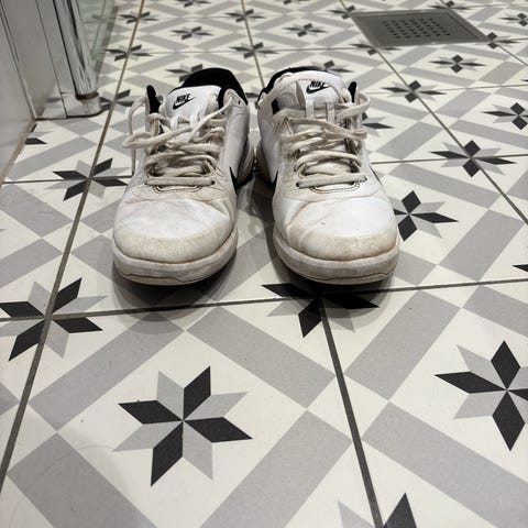 Skoene er lite og pent brukt, og fremstår fortsatt i god stand. God komfort og stabilitet på banen, med solide såler som fortsatt gir godt grep.
