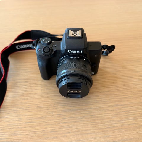 (RESERVERT) Canon EOS M50 Mark II med Objektiv, Kameraveske og 64GB SD Kort