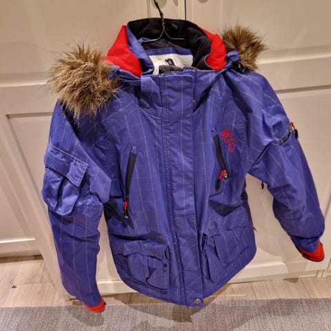 McKINLEY grå/lilla alpin jakke størrelse M. Med Recco brikke. Jakken har mange lommer og skikort lomme.