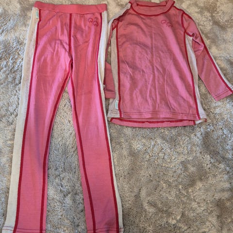 Lappene i trøyer og bukse er klippet av (sensitiv bruker😅). Plaggene framstår størrelsesmessig helt like annet ulltøy i str 116.