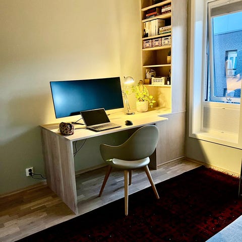 Lekre og moderne høyderegulerbare skrivebord, skap etc.