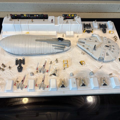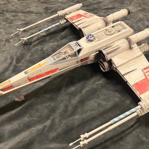 Selger en veldig pent brukt Landspeeder fra Star Wars med en passende (men ikke originalt tilhørende) figur av Luke Skywalker.