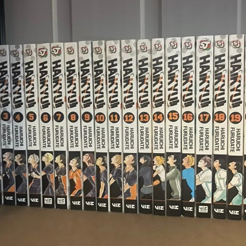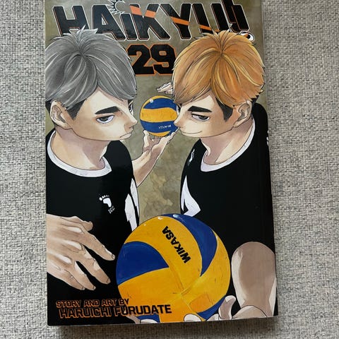Haikyu!! manga bøker volum 1, 28, 29, 30, 31 og 32. Selger samlet. Selger også samlet uten volum 1 hvis man ønsker. Bok 29 har litt gul skjær som vises på bildet.