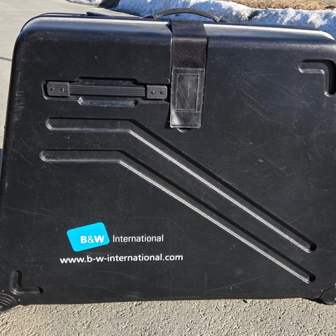 B&W International sykkeltransportkoffert i hard plast, svart farge. Kofferten er utformet for trygg transport av sykkel, med polstret innside og flere festestropper som holder rammen på plass under transport. Innvendig følger det med separate trekk/poser for hjulene. Egnet for frakt og lagring av landeveis- eller terrengsykkel der det kreves ekstra beskyttelse, for eksempel på flyreiser eller lengre reiser. Er ikke låsbar.