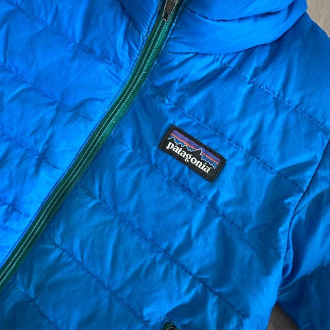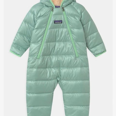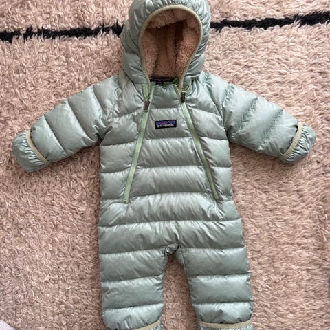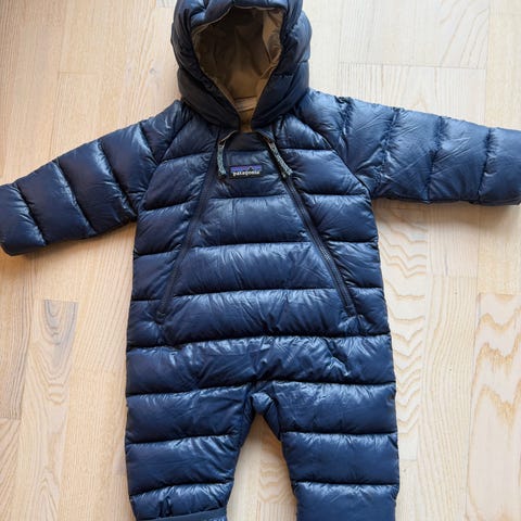 Svært pent brukt dundress fra Patagonia i str 3-6 mnd, men oppleves stor i størrelsen og brukt frem til ca 9-10 mnd her. Ingen synlige flekker eller skrammer.