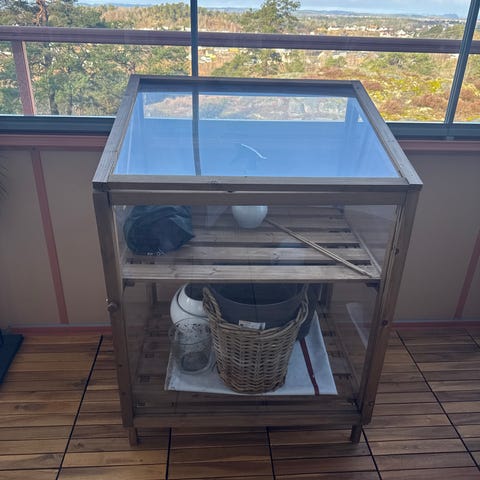 Drivhus frittstående uåpnet med målene 124 x 84 x 197 cm.