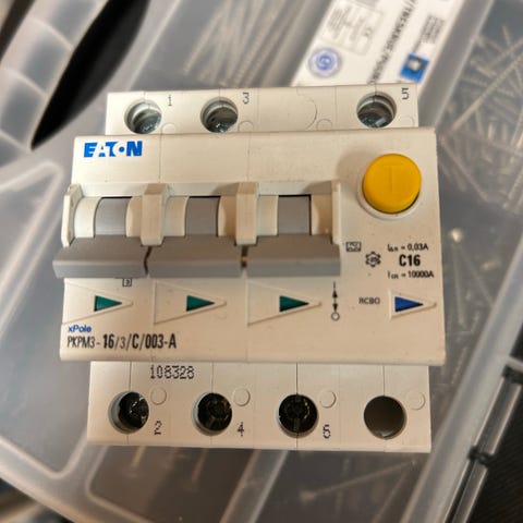 Moeller Xpole jordfeilautomat 2-polet med merkestrøm 20 A og merkefølsomhet 30 mA. Enheten kombinerer funksjonene til automatsikring og jordfeilbryter i én modul. Egnet for montering i sikringsskap på DIN-skinne. Har testknapp på front for kontroll av jordfeilfunksjonen og skruterminaler for tilkobling av ledere. Passer til beskyttelse av kurser i bolig eller mindre installasjoner der det er behov for både overstrøms- og jordfeilbeskyttelse.
