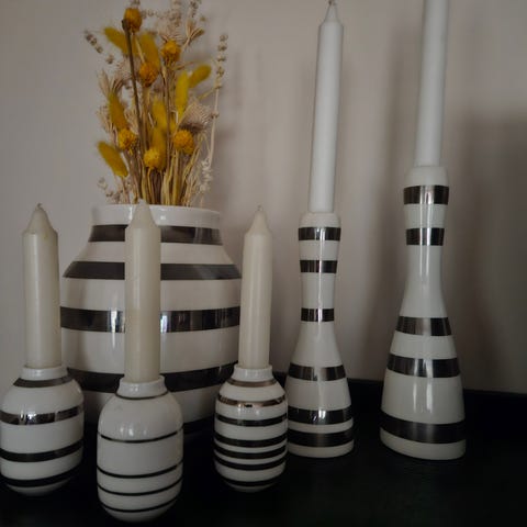 Kähler lysestaker hvit med sølvstriper