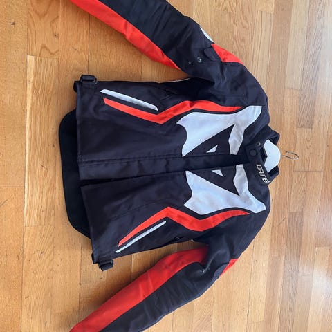 Held motorsykkeljakke for barn i størrelse 140. Jakken er i tekstilmateriale og hat vinterfør avtagbar. Den har justeringsmuligheter på ermer og midje, samt beskyttelseselementer i rygg- og skulderområde.