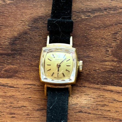 Certina gullfarget dameur med skinnreim Vintage