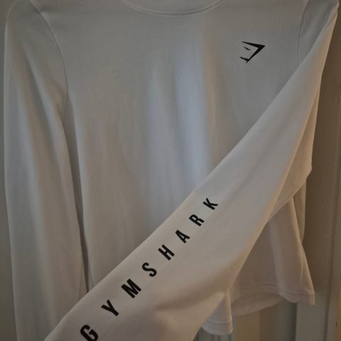Gymshark treningsgenser for herre i størrelse S. Fargen er lyseblå. Innsiden har børstet/fleeceaktig materiale som gir en mykere og litt varmere følelse mot huden, utrolig behagelig. Egnet til trening og fitness, samt annen lett fysisk aktivitet eller hverdagsbruk. Laget i syntetisk materiale som tørker raskt og gir god bevegelighet under trening.