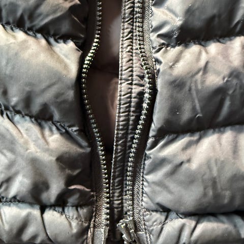 Svart dunjakke for herre i størrelse XS. Jakken har hette og glidelåslukking foran. Den er vattert for varme og har lys innside. Passer til bruk på kjølige dager og som ytterjakke i hverdagen. En liten skade like ved glidelåsen som vist på bildet