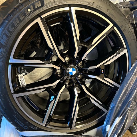 18 komplette hjulsett BMW i4 med 245/45/18 Continental cvc 7 , fra 2022, ca 6,5mm mønster igjen.