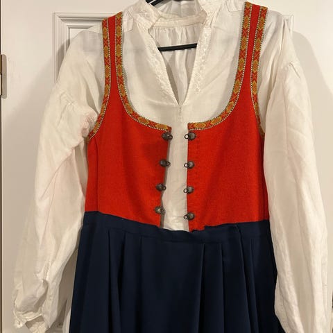 Bunaden er pent sydd og pent brukt. Den har litt skade to steder, men kan enkelt sys. (Lagt ved bilde). Bunaden kan legges ut flere steder.