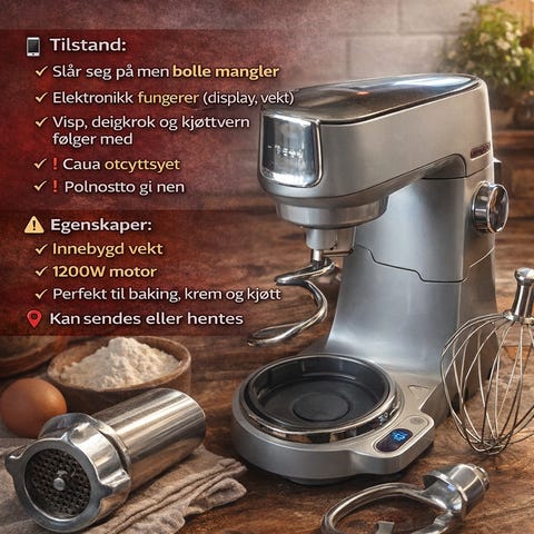 Fått seg en kakk på plastikken. En del år gammel, men ikke mye brukt. Det ser man på utstyret. Litt slarkete enn helt nytt. Tatt bilde av anmerkninger, se tekst.