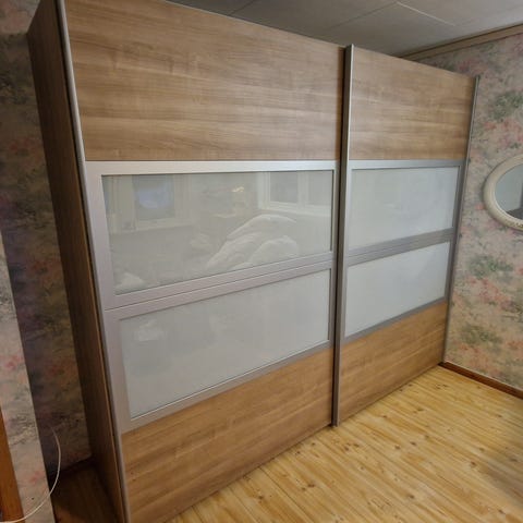 PAX-dører, 1x Forsand (hvitbeiset eikemønster) + 1 Åheim (speildør)