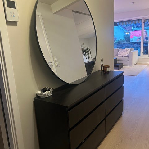 To malmkommoder i brunsort selges billig. Kommodene er skrudd sammen med en skrue, men kan enkelt fjernes. Den ene kommoden mangler bunnlisten. Ny pris 1399kr/stk. Nå 450kr/stk.