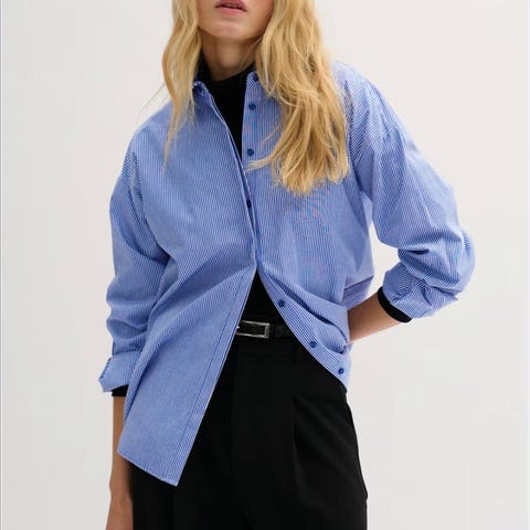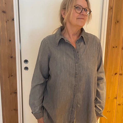 Ella & il skjorte i myk denim, nærmest ubrukt. Skjorten har en oversized fasong og er litt stor i størrelsen, i en fin blåfarge. Laget av 98% bomull og 2% elastan, som gjør den komfortabel og lett å bevege seg i.
