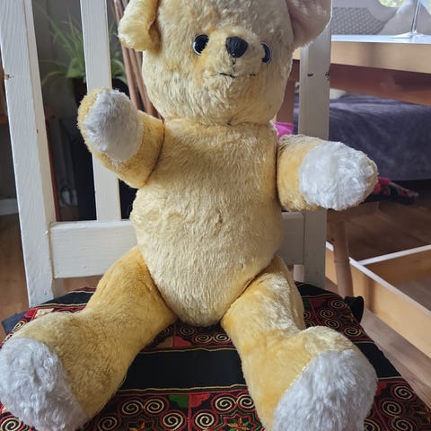 Vintage blikkboks med bamse motiv