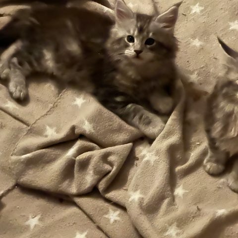 Mor er Maine Coon med stamtavle og far er Maine Coon uten stamtavle, kattungene selges derfor uten stamtavle.