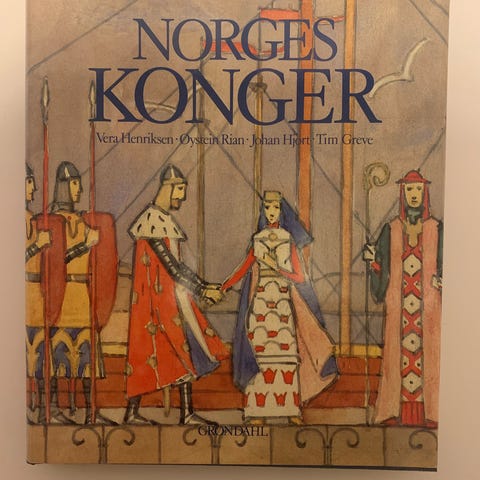 Selger et flott og innholdsrikt eksemplar av klassikeren "Norges konger: fra sagatid til samtid". Forfattere: Vera Henriksen, Øystein Rian, Johan Hjort og Tim Greve. Utgiver: Grøndahl & Søn Forlag (1987). 1. utgave med ISBN: 82-504-0883-7. 299 sider med tekst og fargeillustrasjoner. Hardcover/innbundet utgave. med originalt vareomslag (stort format, ca. 28x25cm).