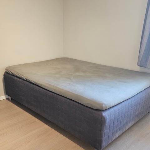 Bohus seng med oppbevaringsskuffer. Sengen har en grå madrass over. og en lys ramme med integrerte skuffer under liggeflaten. Skuffene gir ekstra oppbevaringsplass til for eksempel sengetøy eller klær. Egnet som enkeltseng eller dagseng i soverom, barnerom eller gjesterom.