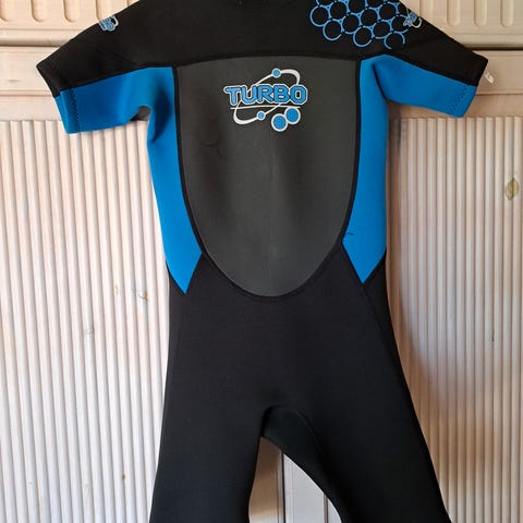 Selger en våtdrakt str 126/5-6 år. Brukt ca tre-fire ganger. Alltid hengt og skylt etter bruk.