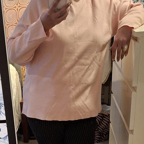 Gerry Weber Samoon genser for dame i størrelse L. Genseren er rosa og laget i viskoseblanding, med mykt og lett stoff. Modellen har rund hals og lange ermer. Baksiden har en synlig glidelås og lett forlenget bakstykke. Egner seg godt til hverdagsbruk og kan kombineres med både bukser og skjørt.