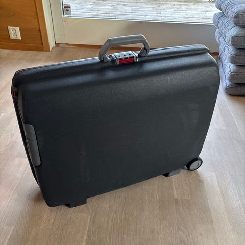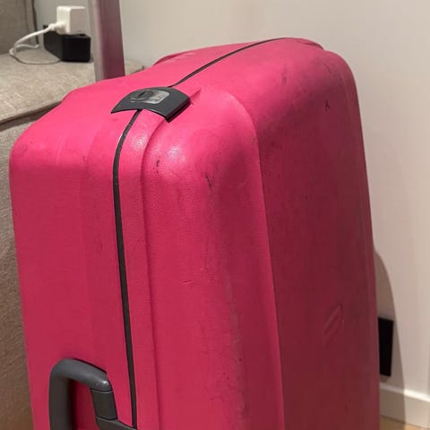 Den store kofferten har mer synlige riper enn den rosa, men kun kosmetisk betydning.